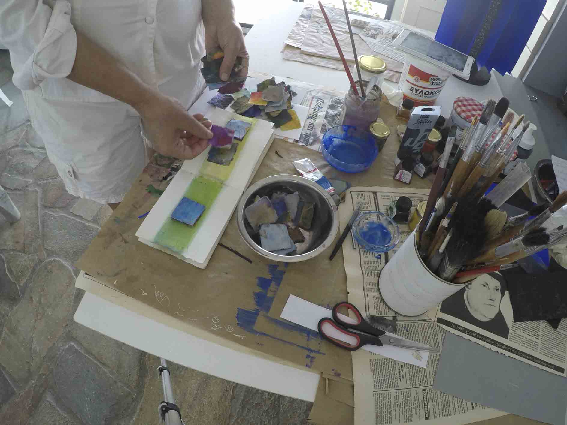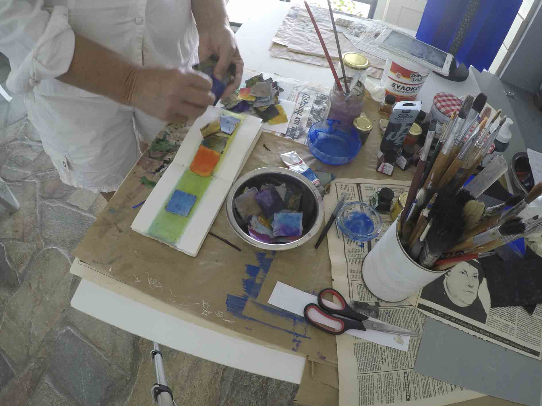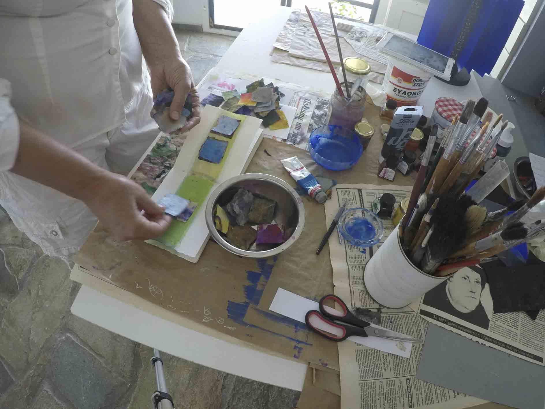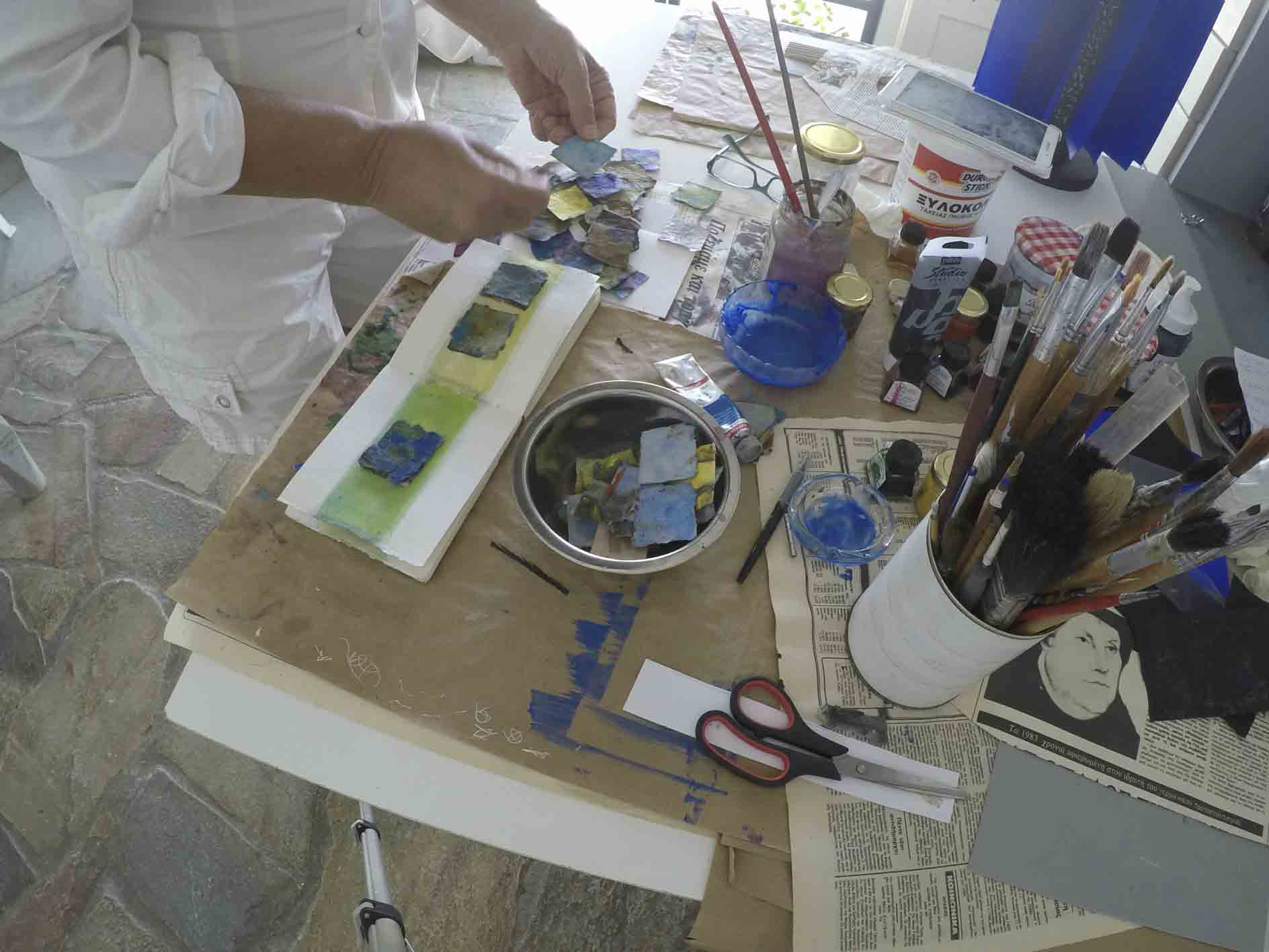 Στη συνέχεια ξεκίνησα ένα καλλιτεχνικό έργο από αμέτρητα καλειδοσκοπικά μοντάζ και αποσυναρμολογήσεις όπου όλοι οι συντελεστές αυτής της φυσικής παράστασης ήταν παρόντες, μερικές φορές σε σημείο αφαίρεσης. Τότε προέκυψε αυτό το φρέσκο και πολύχρωμο σύνολο, για μένα φορτισμένο με ελπίδα και νεωτερικότητα. Και όπως ο κήπος των Εσπερίδων με τα χρυσά μήλα, όλα αυτά μου φαίνονται τώρα πολύ πολύτιμα και διαχρονικά.