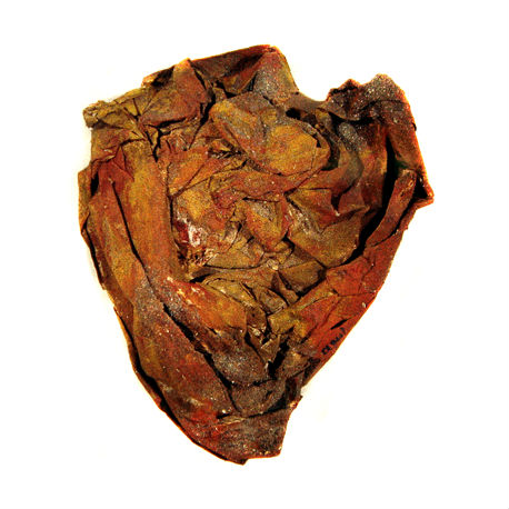 The Topoplasties were conceived as islands of matter,future pillars of a new writing. They consist of paper, pigments, sand and glue.