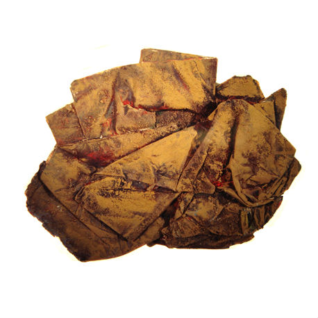 Les Topoplasties ont été conçues comme des îles de matière, futurs supports d’une nouvelle écriture. Elles sont constituées de papier, de pigments, de sable et de colle.