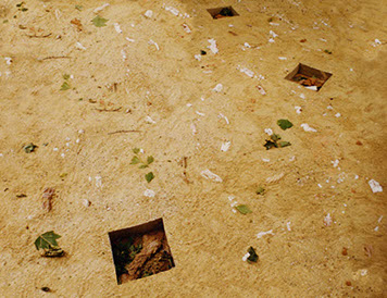 Αυτά τα κεραμικά σχοινιά δεν ψήθηκαν ποτέ και δεν διαδραματίζουν τον ίδιο ρόλο με τα σχοινιά, στήν εγκατάσταση "Chordes". Χωμένα στην άμμο, κρυμμένα σαν ρίζες, αναδύονται ανάλογα με τις πτυχώσεις της επιφάνειας του εδάφους. Μόνο τρία διαφανή κουτιά, σαν τομές του εδάφους που προσφέρονται στη ματιά, επιτρέπουν στο θεατή να παρευρεθεί για έναν ολόκληρο μήνα στην αργή διάλυση των εκθεμάτων, όσο διαρκεί η έκθεση. Η ιδέα της ανάσυρσης αρχαιολογικών ευρημάτων ήταν παρούσα σε όλη την διάρκεια αυτής της αναζήτησης.
