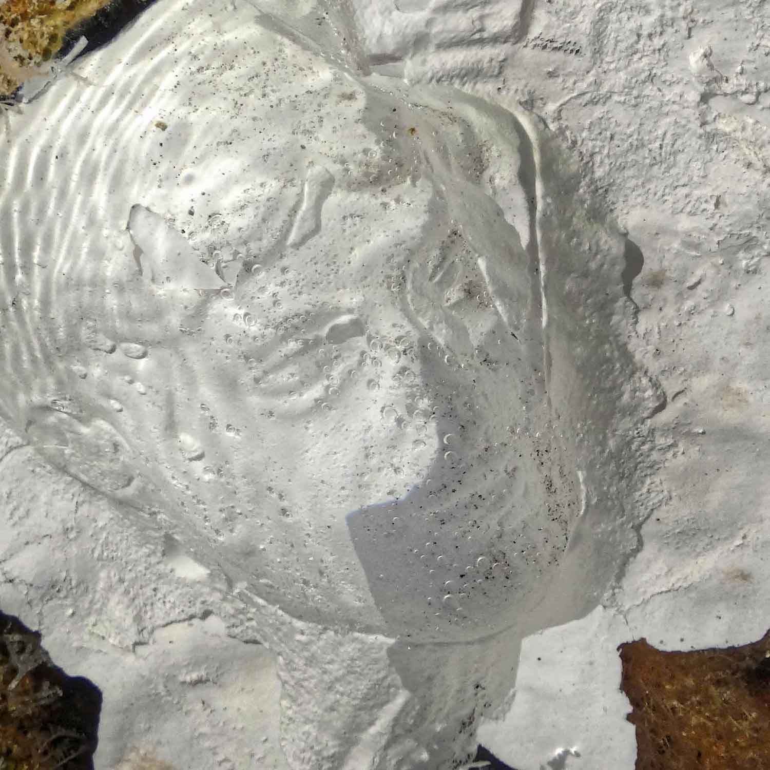 C'est à partir de ces recherches photographiques en creux sur les moulages de têtes, dont voici un extrait, que l'idée d'un diptyque s'est imposé. Comme la réponse d'une figure à l'autre, ou pas. L'image produite est très instable, tantôt on peut la voir en relief, tantôt en creux. Notre cerveau hésite face à une telle proposition. Et comme l'eau, dans mes travaux précédents, semblait voiler le relief des figures et les animer d'une expression, ici c'est le jeu de la lumière sur le volume qui crée le type et la profondeur des regards.